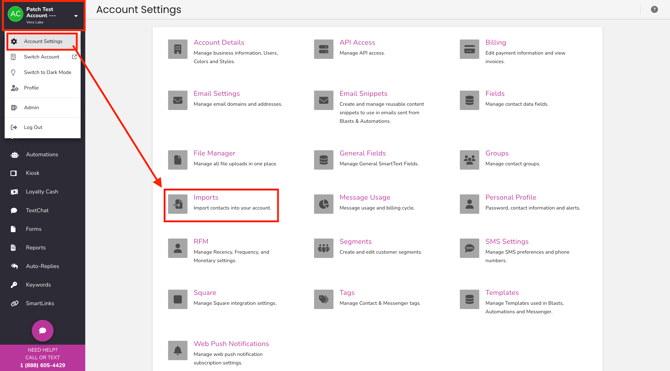 To begin importing your contacts, navigate to Account Settings, and select 'Import'.