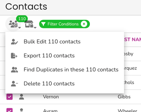- Open Batch Actions. Click Batch Actions in the top left of the Contacts page.