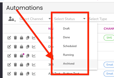 - Filter by Archived. Set the Status filter to Archived.