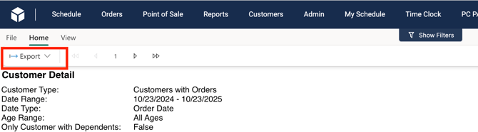 Go to your Party Center Software portal's "Reports" > Customers > Customer Details section. It should look like this when you get there.