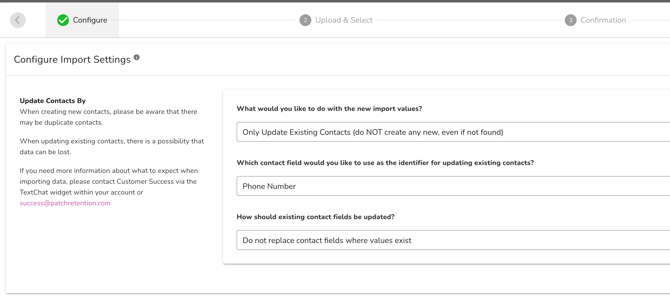 - Set the first option to "Only Update Existing Contacts (do NOT create any new, even if not found)
