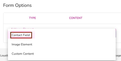 For Form Options, choose ‘Contact Field’